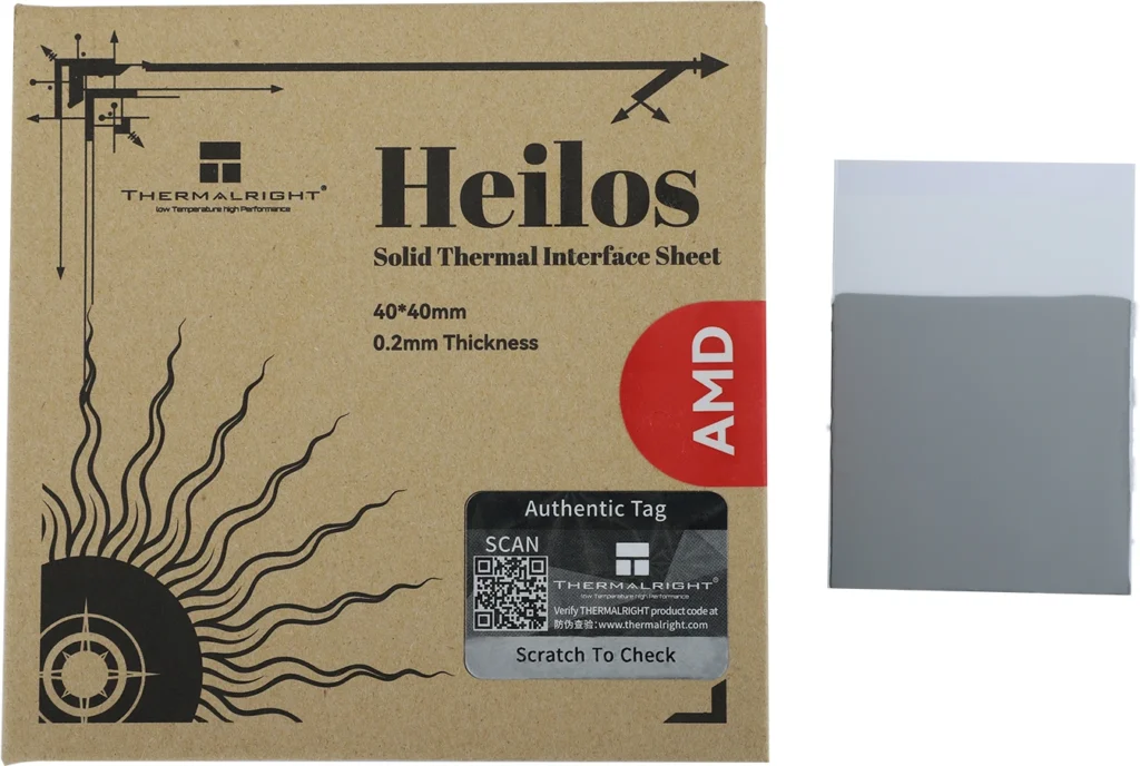 Thermalright Heilos to nowa seria termopadów o grubości zaledwie 0,2 milimetra, ale wysokiej przewodności cieplnej 8,5 W/mK. To tyle samo co popularne na rynku pasty jak Arctic MX-4. Instalacja jest jednak znacznie łatwiejsza – termopady są już odpowiednio przycięte pod procesory AMD Ryzen (40 x 40 mm) lub Intel Core (30 x 40 mm) i nic nie trzeba rozprowadzać na CPU. Po prostu kładziecie to na chłodzeniu i zdejmujecie folię.