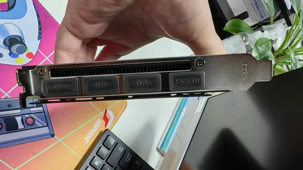 Ważnym aspektem tego modelu jest możliwość zainstalowania wielu takich kart graficznych w jednym systemie, co jest ważne w przypadku aplikacji, które wykorzystują więcej niż jeden wyświetlacz. Mówiąc o monitorach, należy zauważyć, że jednoslotowy GeForce RTX 4060 Ti ma cztery wyjścia wideo: trzy DisplayPorty i jedno złącze HDMI. Co więcej kilka takich jednoslotowych kart może być również wykorzystywanych do obliczeń FP16 i/lub FP32.