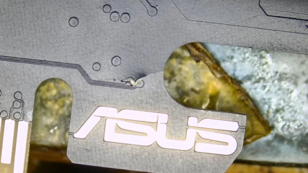 GeForce RTX 4090 to potężna i skomplikowana karta graficzna. Zazwyczaj jej laminat składa się z 12-15 warstw, z których każda zawiera złożony układ ścieżek elektrycznych. Serwis karty graficzne z takim uszkodzeniem określa jako „nie do naprawienia”. W rzeczywistości pęknięte płytki PCB z tak wieloma warstwami są możliwe do naprawy, ale jest to trudne i czasochłonne. W efekcie nie jest to opłacalne pod względem finansowym.