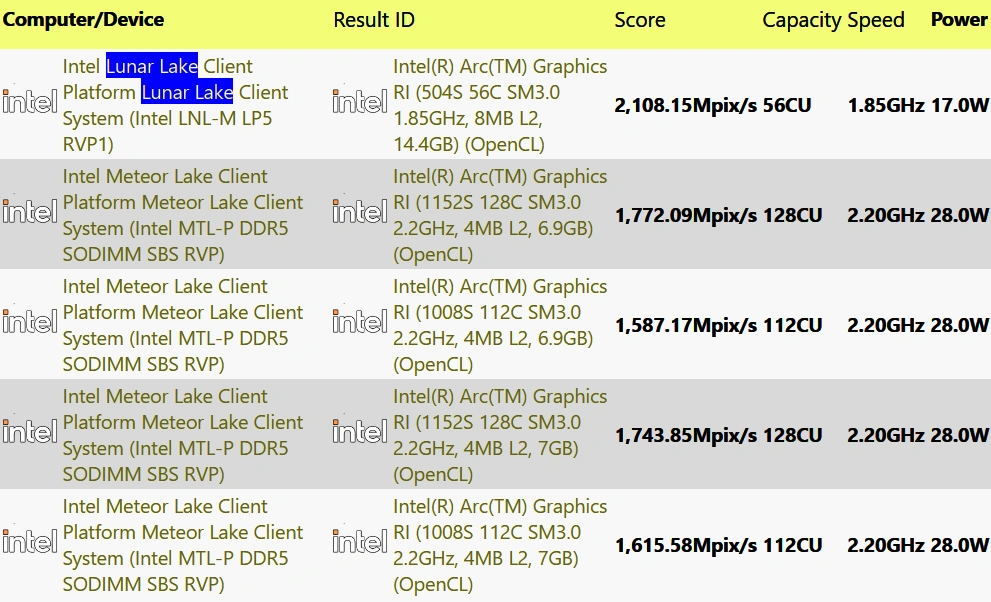 Nowy procesor uzyskał wynik 2108 Mpix/s, sprawdzając się znacznie lepiej niż układy Intel Meteor Lake. Cieszy to tym bardziej, że wersja, którą poddano benchmarkowi wyposażona jest jedynie w 7 rdzeni, a nie w 8, które trafią do sprzedaży. CPU pracowało z TDP rzędu 17 W i taktowaniem na poziomie 1,85 GHz. Jak więc widać – wolniejsze taktowanie, mniej rdzeni i niższy pobór mocy nie przeszkodziły mu osiągnąć lepszych wyników niż poprzednik.