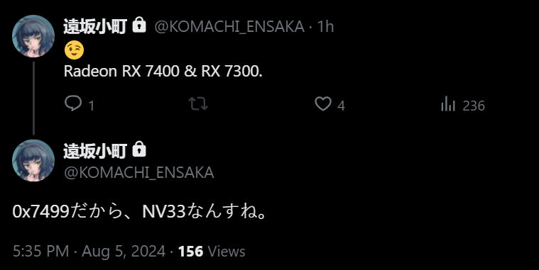 W sieci pojawiły się doniesienia, że AMD pracuje nad układami Radeon RX 7400 oraz Radeon RX 7300. Mają one korzystać z rdzeni Navi 33, a więc architektury RDNA3. Jednak na chwilę obecną brak jakichkolwiek szczegółów na temat specyfikacji. Znany jest tylko PCI ID „7499”, co sugeruje że informacja ta pochodzi ze sterowników lub oprogramowania open-source.