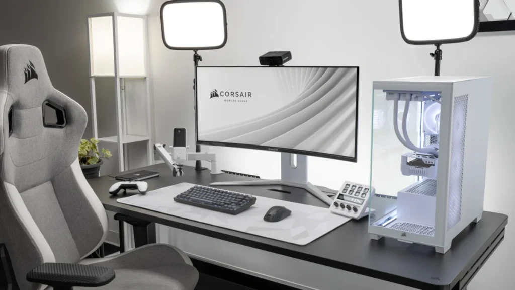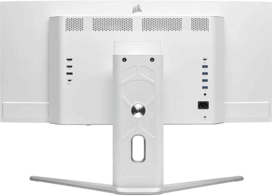 Jeśli chodzi o panel I/O, Corsair do naszej dyspozycji oddaje dwa złącza HDMI 2.1, jedno DisplayPort 1.4, dwa USB typu C, cztery USB 3.2 Gen 1 typu A oraz gniazdo audio. Oczywiście, ekran możemy dostosować do naszych potrzeb dzięki szerokim opcjom pochylania w pionie i poziomie oraz regulacji wysokości. Ciekawym dodatkiem jest menu, którym sterujemy za pomocą czujnika zbliżeniowego, a nie fizycznych przycisków.