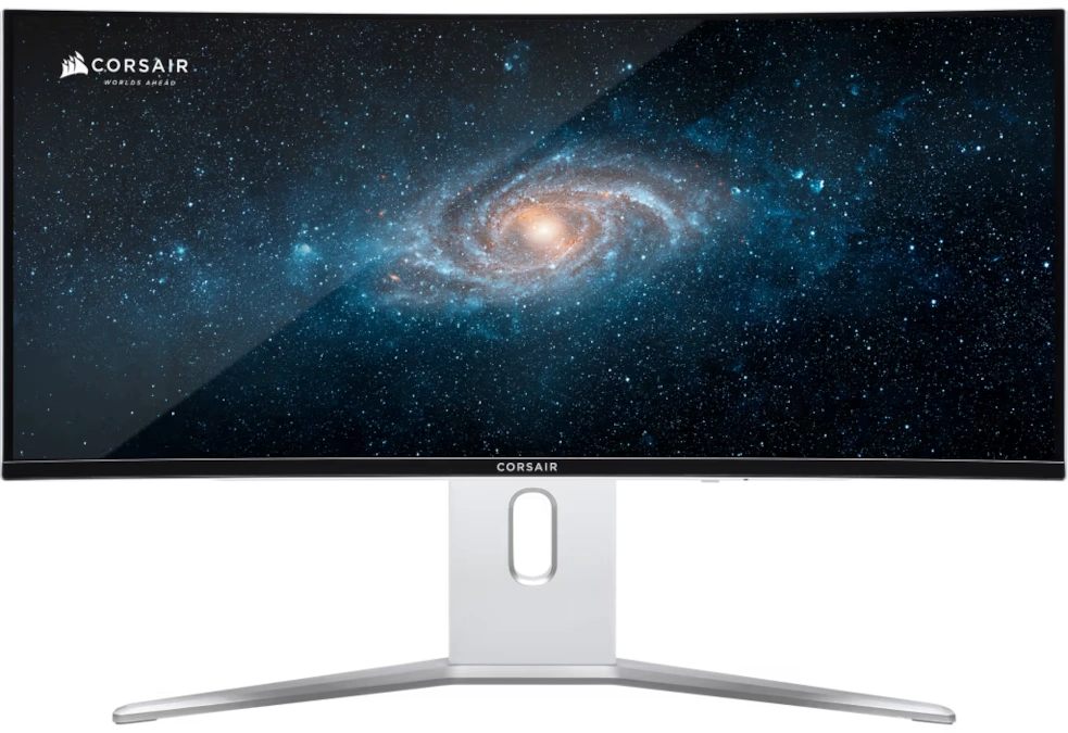 Corsair XENEON 34WQHD240-C to potężny, 34-calowy ultrapanoramiczny monitor wyposażony w zakrzywioną (1800R) matrycę QD-OLED od Samsunga. Oferuje ona rozdzielczość 3440 x 1440 pikseli i proporcje obrazu 21:9. Częstotliwość odświeżania wynosi do 240 Hz, a czas reakcji to zaledwie 0,03 ms (GtG). Szczytowa jasność sięga 1000 cd/m2.