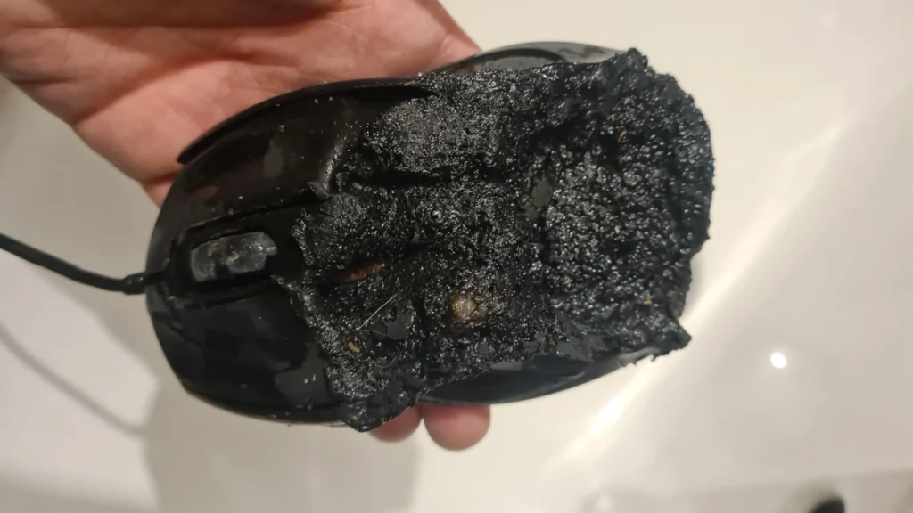 Jeden z użytkowników GIGABYTE M6880X poinformował, że jego urządzenie z jakiegoś powodu stanęło w płomieniach. Jedyne co z niego zostało, to stopiona skorupa i kawałki popiołu fruwające po pokoju. Oczywiście podobny los spotkał podkładkę, na której leżał gryzoń. Na szczęście nie ucierpiały żadne inne sprzęty ani osoby. Jako, że mamy tutaj do czynienia z tradycyjnym rozwiązaniem podłączanym do komputera przewodowo, można wykluczyć wine wbudowanego, lub umieszczone przez użytkownika, akumulatora.
