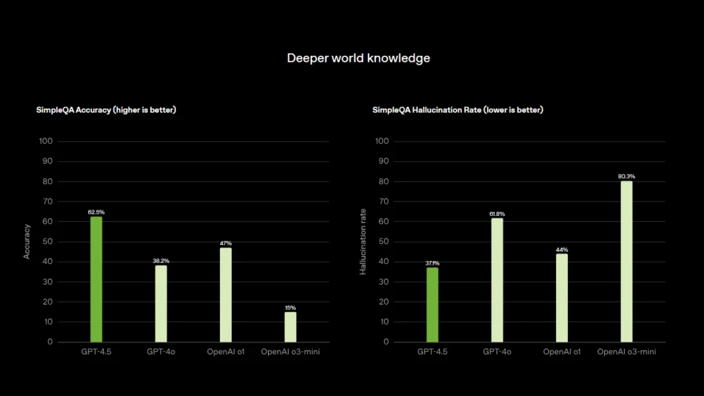 GPT-4.5 ma wprowadzić znaczące ulepszenia w zakresie precyzji odpowiedzi oraz posiadać bardziej realistyczną inteligencję emocjonalną. Firma zaznacza jednak, że mimo swojej mocy, model ten nie jest jeszcze najbardziej zaawansowaną wersją. Może to sugerować, że OpenAI przygotowuje już kolejną dużą aktualizację dla ChatGPT. Jednocześnie podkreślają oni, że o3 pozostaje najpotężniejszym modelem w zakresie zdolności rozumowania.