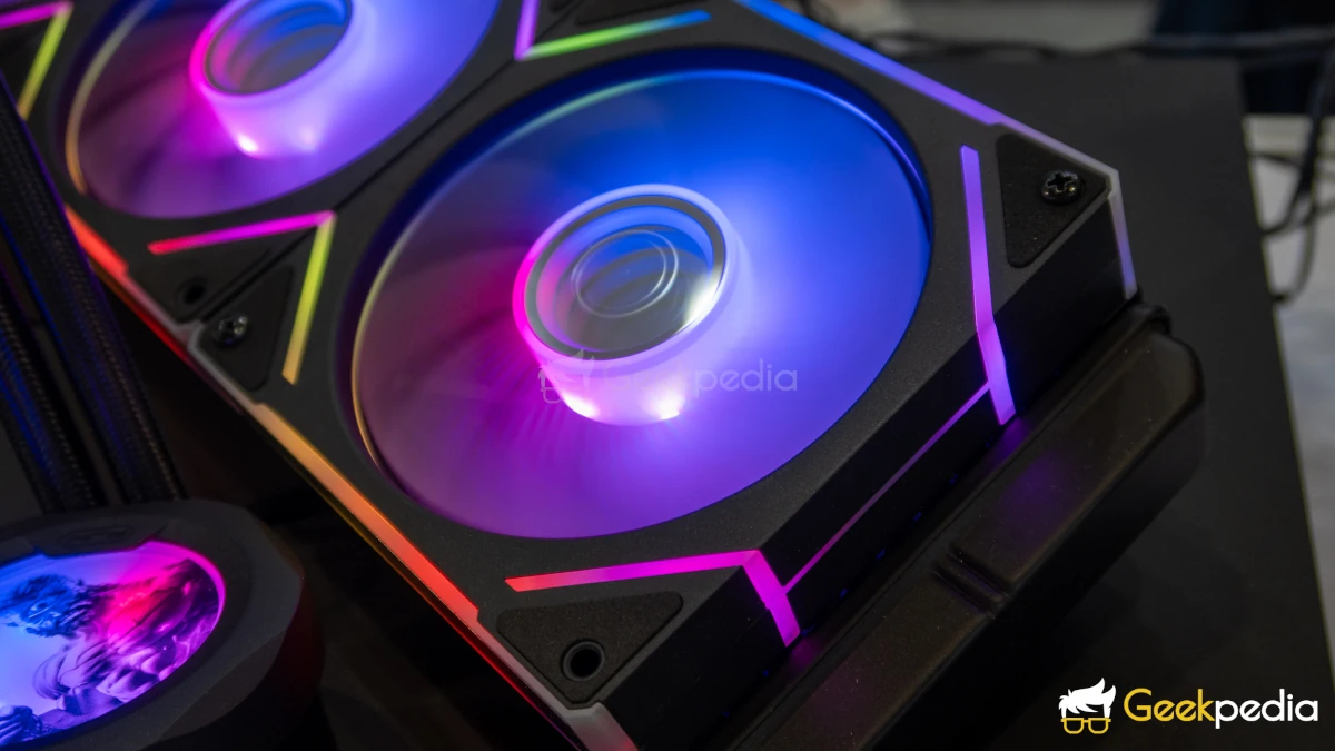 W tym wypadku postawiono na ciecz. Ten ciekawy zestaw AiO składa się z pompki o miedzianej stopce i kulturze pracy na poziomie 30 dB(A) oraz żywotności około 50 000 godzin. Dopełnia ją spory, aluminiowy radiator o wymiarach 397 x 120 x 27 milimetrów i masie 1500 gramów. O jej schłodzenie dbają trzy 120 mm wentylatory na hydrodynamicznym łożysku. Oferują one prędkość do 2200 RPM i przepływ powietrza do 67,38 CFM przy ciśnieniu do 2,57 mmH2O. Ich głośność nie powinna przekraczać 33 dB(A), a producent gwarantuje, że przepracują przynajmniej 50 000 godzin. Oczywiście, jak na sprzęt tej klasy przystało, nie zabraknie tu podświetlenia ARGB LED.