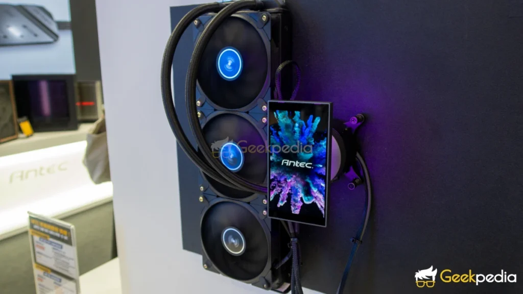 Kultura pracy Antec Vortex View nie powinna przekraczać 28,6 dB(A), a producent obiecuje żywotność na poziomie 50 000 godzin. Najbardziej jednak rzuca się w oczy dołączony do zestawu dość spory ekran LCD. Może on wyświetlać zarówno statyczne obrazki, wideo oraz szczegółowe informacje o stanie naszych podzespołów.