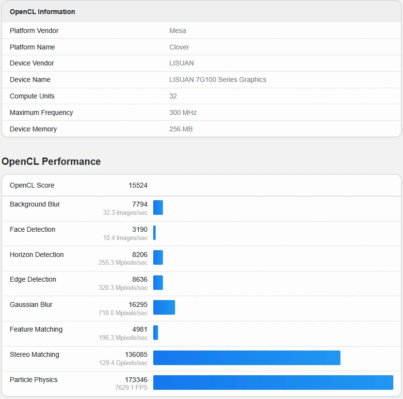 Platforma testowa oparta była na procesorze AMD Ryzen 7 8700G, płycie główniej Colorful Battle-AX B650M-Plus oraz 64 GB pamięci DDR5-4800. W teście OpenCL osiągnięto wynik 15 524 punktów, czyli na poziomie leciwych kart NVIDIA GeForce GTX 660 Ti, AMD Radeon R9 370 czy iGPU w układzie Samsung Exynos 2400 dla smartfonów. Należy brać pod uwagę, że mamy do czynienia zapewne z próbką inżynieryjną ciągle znajdującą się w fazie testów. Masowa produkcja przewidywana jest na przełom 2025 i 2026 roku.