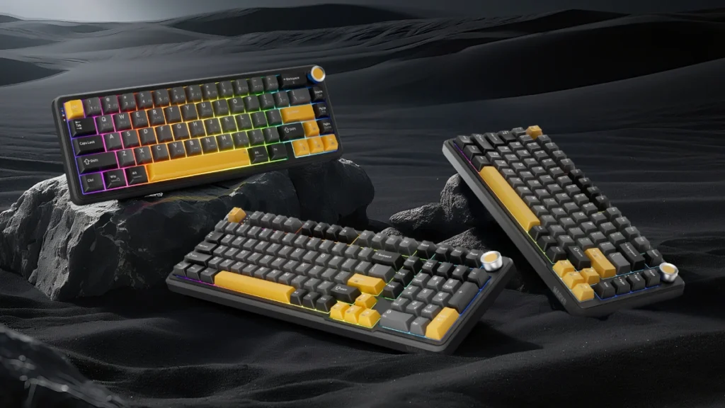 Seria MARVO Titan to rodzina gamingowych klawiatur mechanicznych, która łączy ze sobą solidną specyfikację i atrakcyjną cenę. Znajdziemy tutaj modele w rozmiarach 65, 75 i 98% i są to główne różnice jakie między nimi występują. Wszystkie mogą pochwalić się podświetleniem RGB LED, łącznością bezprzewodową w postaci technologii Bluetooth i 2,4 GHz czy też szeregiem przydatnych przycisków multimedialnych.
