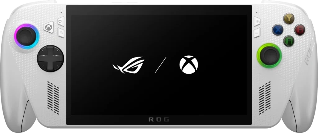 Jeśli chodzi o wnętrze, to tutaj mamy już kilka różnic. ASUS ROG Xbox Ally X został wyposażony w ośmiordzeniowy procesor AMD Ryzen AI Z2 Extreme z taktowaniem 2 GHz i NPU o wydajności 50 TOPS. GPU natomiast to zintegrowany AMD Radeon z 16 CU i zegarem do 2,9 GHz. Całość wspierana jest przez 24 GB pamięci RAM LPDDR5X, a na gry przeznaczono SSD PCIe 4.0 x4 1 TB. Akumulator ma pojemność 80 Wh.