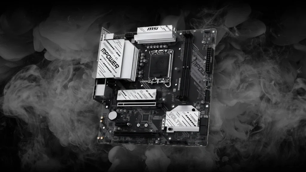 MSI B760 MPOWER to płyta główna w formacie Micro ATX, którą stworzono z myślą o podkręcaniu (tzw. OC). Potwierdza to rozbudowana, 14-fazowa sekcja zasilania z okazałymi radiatorami i dwa banki dla pamięci DDR5 8000+ MT/s. Oprócz tego na czarnym PCB znajdziemy wzmocnione złącze PCI Express 5.0 x16 oraz klasyczne PCIe 4.0 x4 i PCIe 3.0 x1.