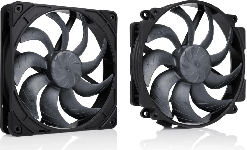 Noctua NF-A14x25 G2 PWM chromax.black i NF-A14x25r G2 PWM chromax.black to wentylatory 140-milimetrowe, wykonane z polimerów ciekłokrystalicznych i wyposażone w łożysko SSO2. Oferują one prędkość do 1500 RPM, przepływ powietrza do 91,58 CFM, ciśnienie do 2,56 mmH2O i deklarowaną głośność nieprzekraczającą 24,8 dB(A).