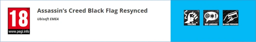 Na stronie Pan European Game Information (PEGI), organizacji zajmującej się klasyfikowaniem gier pod względem zawartych w nich treści i określaniu dla jakiej kategorii wiekowej będą się nadawać, pojawiła się wczoraj niespodziewana informacja. Chodzi oczywiście o umieszczenie w jej zasobach „Assassin’s Creed IV: Black Flag Resynced”, a więc odświeżonej wersji gry, uważanej za jedną z najlepszych w tym uniwersum.