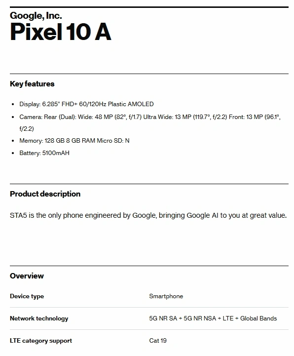 Google Pixel 10a będzie najtańszym smartfonem w aktualnej generacji internetowego giganta, który ma zastąpić poprzednika wydanego w marcu 2025 roku. I chociaż było niemal pewne, że zabraknie tutaj technologicznego przełomu, to Google poszło o krok dalej. Z dokumentów amerykańskiego operatora Verizon wynika, że nie uświadczymy tutaj niemal żadnych zmian.