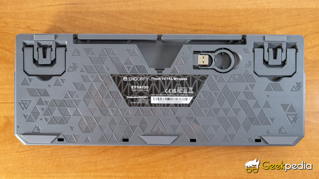 Oczywiście możemy regulować pochylenie klawiatury za pomocą rozkładanych nóżek wyposażonych w nakładki antypoślizgowe – oferują one trzy stopnie nachylenia. Obudowa została wykonana z wysokiej jakości tworzywa i dodatkowo wzmocniona nakładką z aluminium, przez co całość sprawia wrażenie sprzętu dość solidnego. Nie ma mowy o trzaskach i wyginaniu się, co zdarza się nawet w droższych produktach.