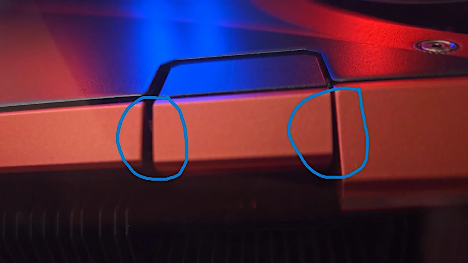 Niestety, rzeczywistość okazała się brutalna. Niedawno duży szwedzki sprzedawca poinformował, że Tajwańczycy wstrzymali sprzedaż z powodu problemów z kontrolą jakości. Nie zdradzono jednak żadnych szczegółów, ale teraz już wiemy więcej, dzięki jednemu z nabywców, który kartę zdążył dostać. Złącze zasilające 12V-2×6 jest krzywo zamontowane względem metalowej ramki coolera, co uniemożliwia poprawne wpięcie przewodu.