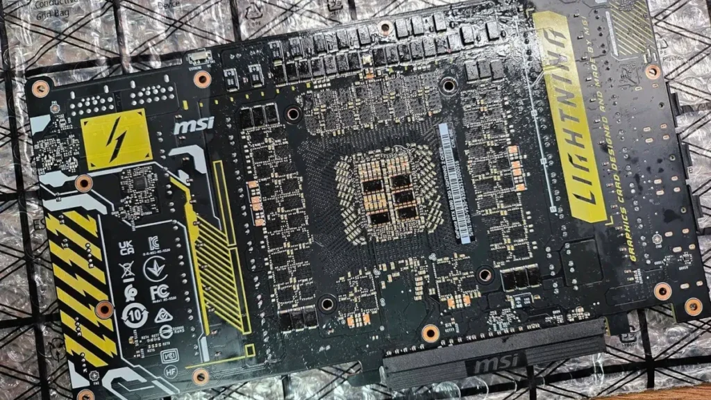 Jednak zagraniczna redakcja UNIKO’s Hardware opublikowała fotografie przedstawiające pełne PCB. Dużo ciekawiej niż znany nam już rdzeń NVIDIA GB202-300-1A prezentuje się szalenie rozbudowana, 40-fazowa sekcja zasilania. Dopełniają to aż dwa złącza zasilające 12V-2×6 (16-pinowe). Wszystko po to by zapewnić jak najlepszy potencjał OC. Wygląda też na to, że model będzie się nazywać MSI GeForce RTX 5090 Lightning Z OCER.