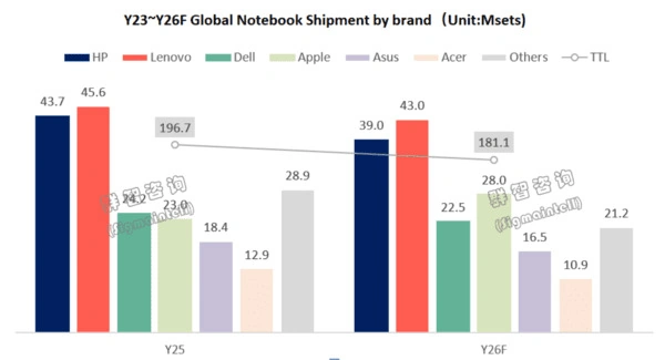 Problem dotyka niemal wszystkich producentów – m.in. HP, Lenovo, Dell, ASUS, Acer. Wyjątkiem jest Apple. Gigant z Cupertino jest jedyną firmą, która może odnotować wzrost sprzedaży. Jeśli przewidywania się spełnią, dostarczą oni o 5 milionów więcej MacBooków. Mowa dokładniej o skoku z 23 milionów w 2025 do 28 milionów egzemplarzy w 2026 roku.